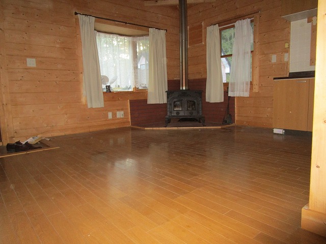 建物はほとんど利用されておらず、新古住宅のようです。しかも、薪ストーブも設置してあります。
